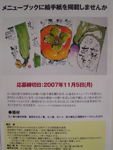 ○応募先 〒251-0035 藤沢市片瀬海岸2-20-12 江ノ島小屋「絵手紙」係