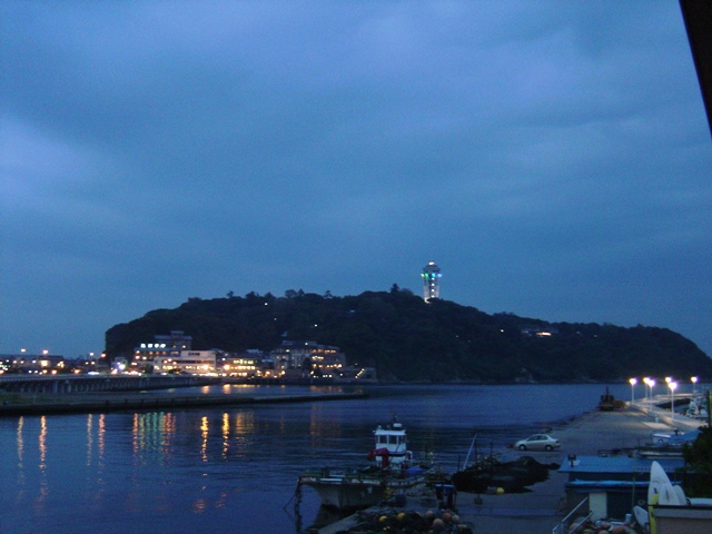 夕暮れの江ノ島。この時間帯はこんにちはと挨拶すべきかこんばんはと挨拶すべきか少し悩む時間帯でもあります。江ノ島灯台のブルーと、空・海のブルーが美しいです。