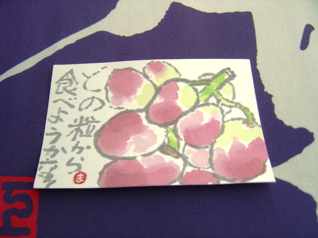 秋の味覚、葡萄の絵手紙。美味しそうに実った葡萄の粒を見ながら、嬉しそうにどうやって食べようかを考えている雰囲気がとても伝わります。この度もたくさんのご応募ありがとうございました。まだまだご紹介出来ていない絵手紙もたくさんございますので、改めて次回ご紹介致します。お楽しみに!