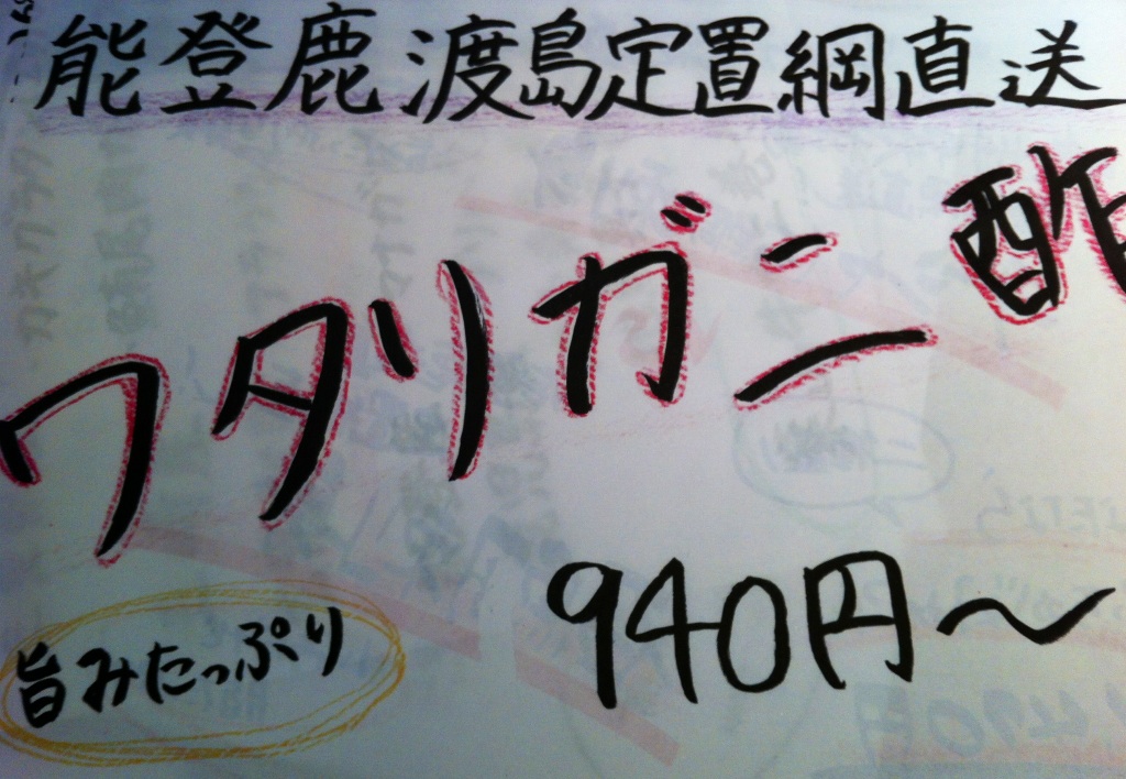 『本日のおすすめはこちらのワタリガニ酢!大ぶりの蟹がこの値段は