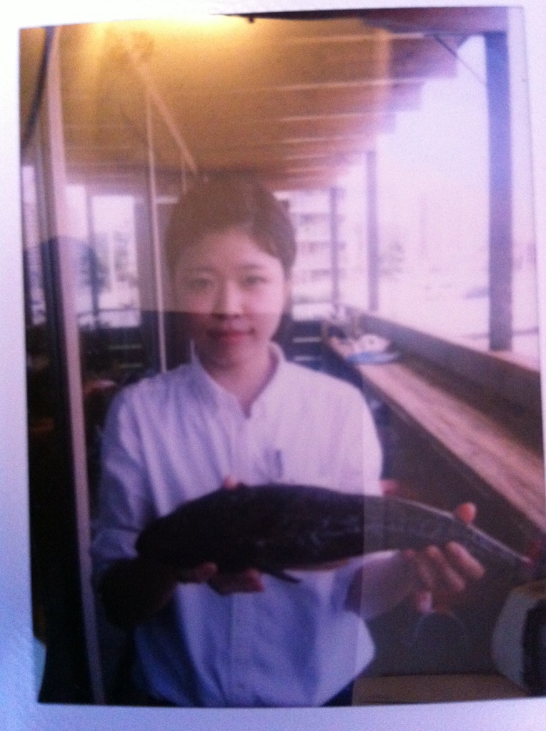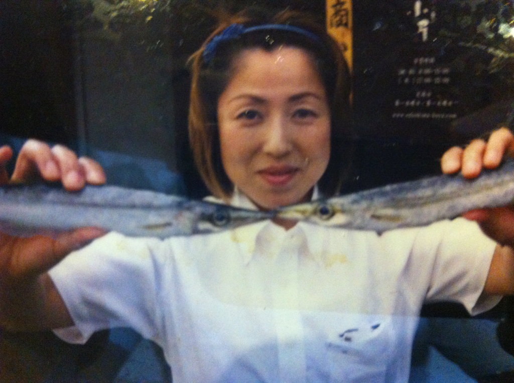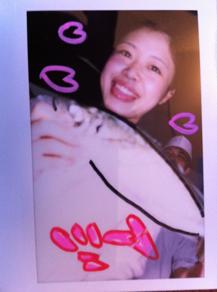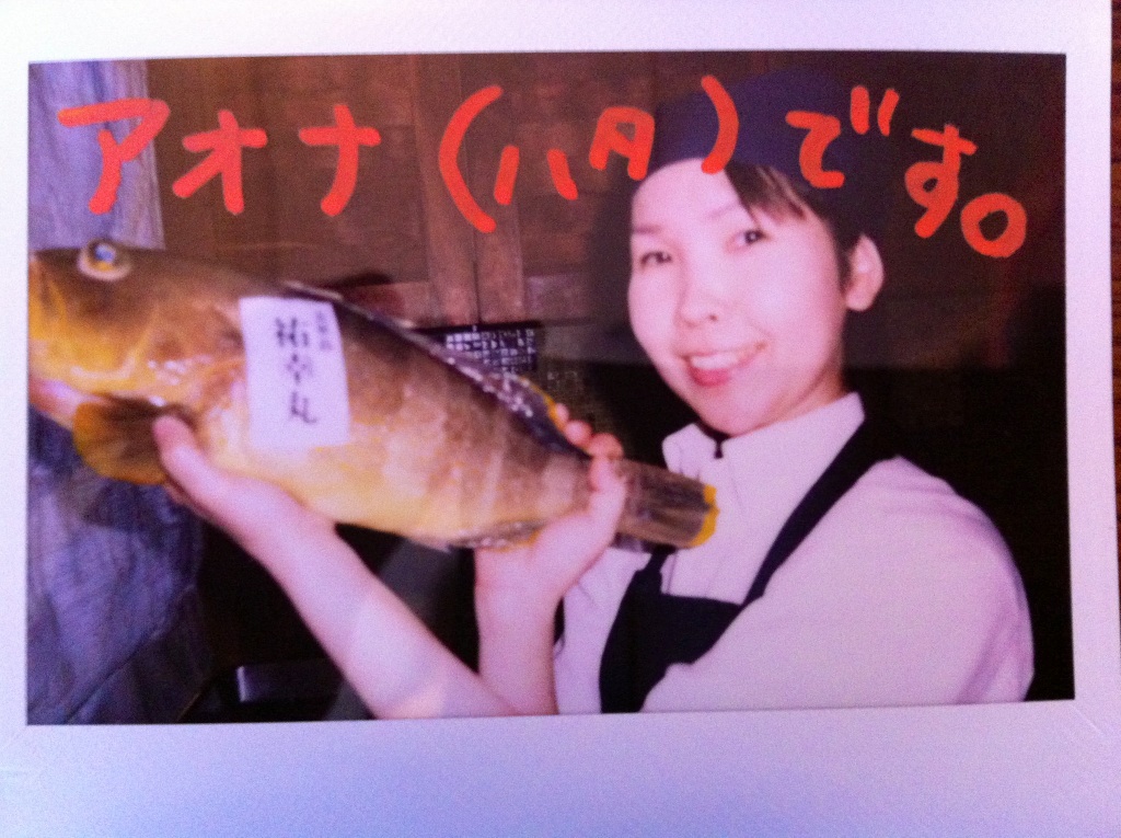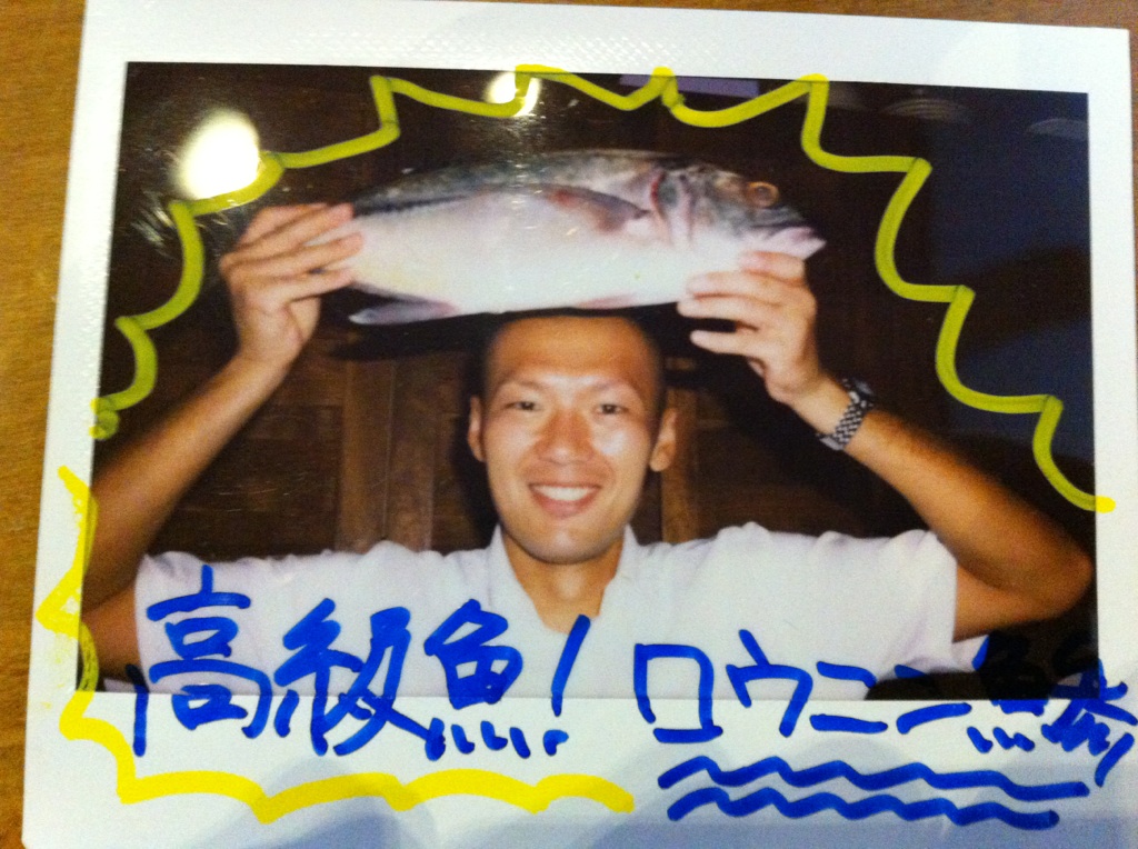 『こちらは高級魚、ロウニンアジ!赤身の身はまるで鮪!!ぜひお試しを!!』