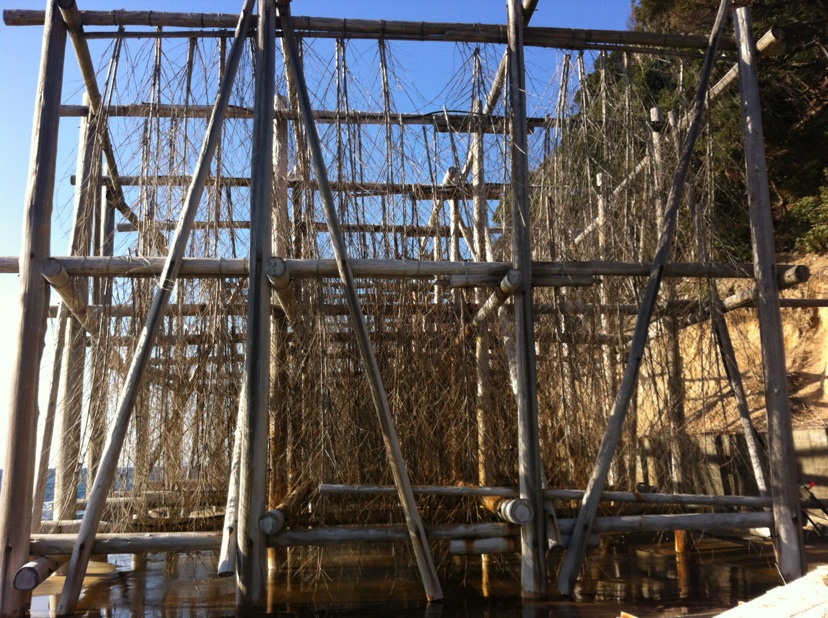 『ゆっくり、ゆっくりつたい落ちる海水。強い風や雨、高い湿度の時にはさらに時間がかかってしまいます。梅雨時期にはなんと1ヶ月近くもかかるらしいです!!ひょえ〜〜〜〜!!』