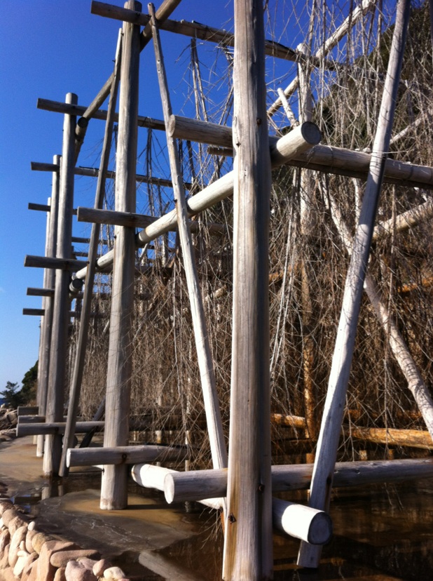 『まるで何かのアートのような立体塩田。一週間にあるかないかのほれぼれするほど綺麗な海の時に海水を汲み上げ、この塩田で10日間かけて海水を循環させていきます。営養豊富な海水が太陽の力と風の恩恵を受けて徐々に濃度をあげ旨味と塩の香りを帯びていきます。』
