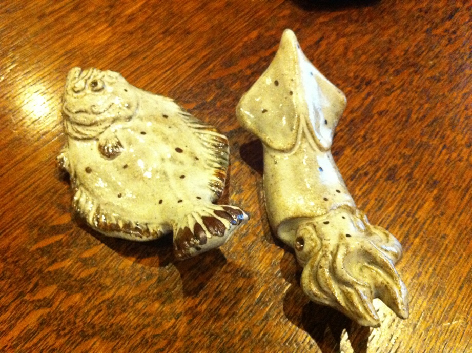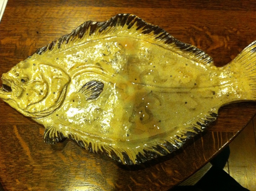 『唐津市で仕入れました、唐津焼きの器。色んな魚バージョンがありまして、写真はヒラメです♪』