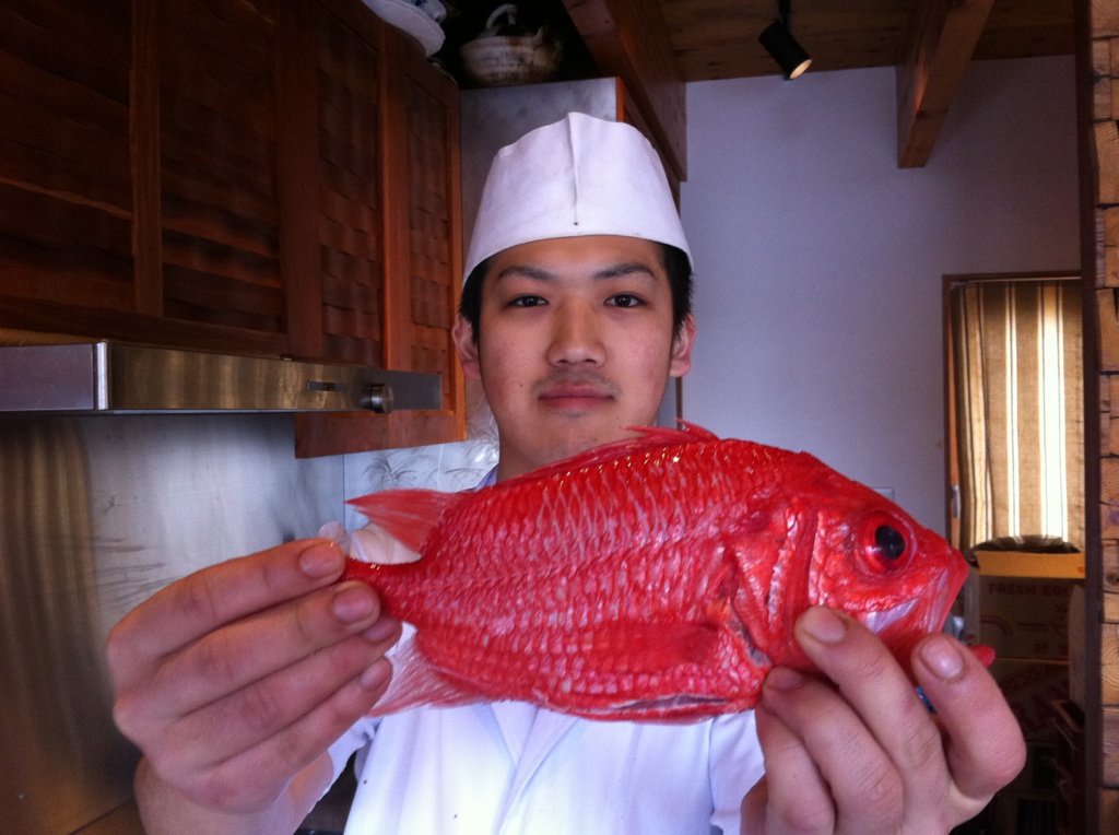 『これは超珍しい魚のエビスダイ!金目鯛に似た出で立ちなのですが、その身は繊維質で金目以上の旨さらしいです!!』