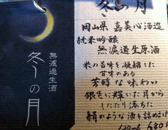 もうひとつが岡山県喜美心酒造、純米吟醸無ろ過生原酒の”冬の月”。