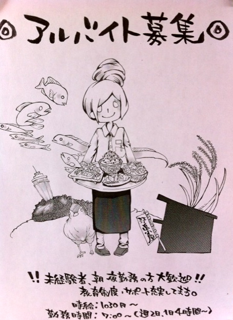 業務内容:ホール接客、調理補助、イベント企画、メニューデザインなど